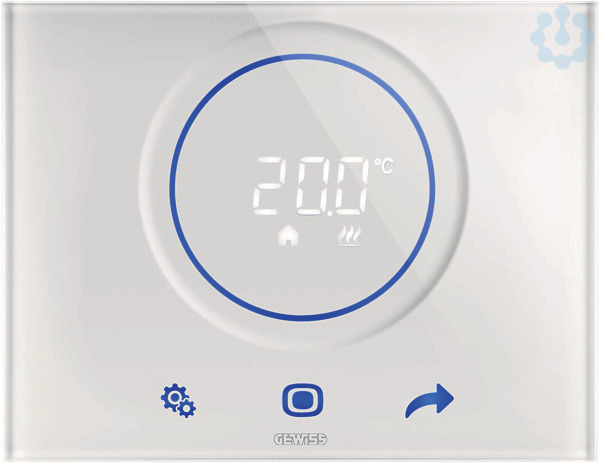 Aufputz-Thermostat fuer die Steuerung von Geraeten zur Heizung/Kuehlung. Mit Touch Oberflaeche. Inbetriebnahme mit GEWISS APP Thermo ICE 2.0.