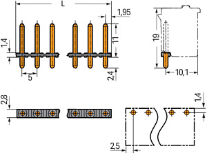 Winkel Leiterplatte/Kontakt 90° (vertikal nach oben)
