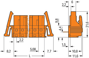 THT-Federleiste abgewinkelt Rastermaß 5,08 mm orange