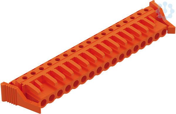 THT-Federleiste; abgewinkelt; Rastermaß 5,08 mm; 17-polig; Verriegelungsklinke; Lötstift 0,6 x 1,0 mm; orange