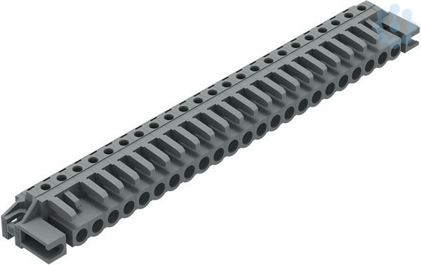 THT-Federleiste; abgewinkelt; Rastermaß 5 mm; 23-polig; Distanzflansch; Lötstift 0,6 x 1,0 mm; grau