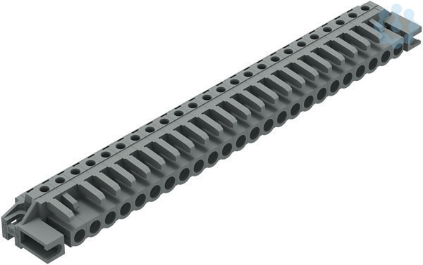 THT-Federleiste; abgewinkelt; Rastermaß 5 mm; 24-polig; Distanzflansch; Lötstift 0,6 x 1,0 mm; grau