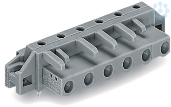 THT-Federleiste; abgewinkelt; Rastermaß 7,5 mm; 5-polig; Befestigungflansch; Lötstift 0,6 x 1,0 mm; grau