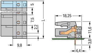 THT-Federleiste abgewinkelt Rastermaß 7,5 mm grau