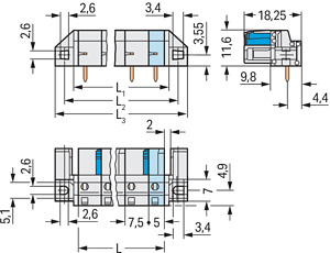 THT-Federleiste abgewinkelt Rastermaß 7,5 mm lichtgrau