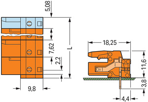 THT-Federleiste abgewinkelt Rastermaß 7,62 mm orange
