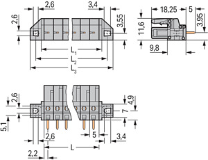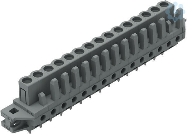 THT-Federleiste; gerade; Rastermaß 5 mm; 15-polig; Befestigungflansch; Lötstift 0,6 x 1,0 mm; grau