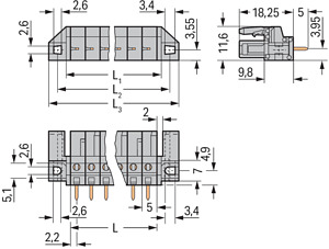 THT-Federleiste gerade Rastermaß 5 mm grau
