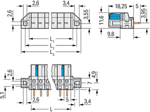 THT-Federleiste gerade Rastermaß 5 mm lichtgrau