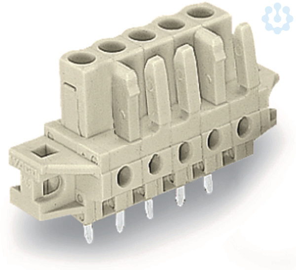 THT-Federleiste; gerade; Rastermaß 5 mm; 16-polig; 100% fehlsteckgeschützt; Befestigungflansch; Lötstift 0,6 x 1,0 mm; lichtgrau