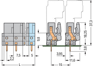 THT-Federleiste gerade Rastermaß 7,5 mm grau
