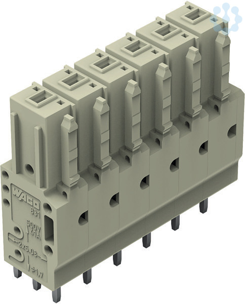 THT-Federleiste; gerade; Rastermaß 7,62 mm; 6-polig; 100% fehlsteckgeschützt; Lötstift 1,0 x 1,2 mm; lichtgrau