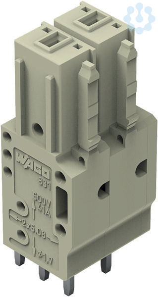 THT-Federleiste; gerade; Rastermaß 7,62 mm; 2-polig; 100% fehlsteckgeschützt; Lötstift 1,0 x 1,2 mm; lichtgrau
