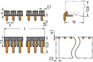 THT-Stiftleiste; Lötstift Ø 1,4 mm; abgewinkelt; Rastermaß 5 mm; 4-polig; schwarz