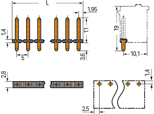 THT-Stiftleiste; Lötstift Ø 1,4 mm; gerade; Rastermaß 5 mm; 4-polig; schwarz