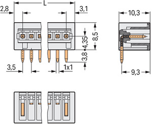 THT-Stiftleiste; Lötstift 1,0 x 1,0 mm; abgewinkelt; 100% fehlsteckgeschützt; Rastermaß 3,5 mm; 11-polig; lichtgrau