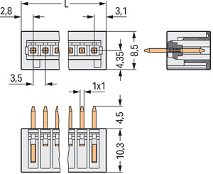 THT-Stiftleiste; Lötstift 1,0 x 1,0 mm; gerade; 100% fehlsteckgeschützt; Rastermaß 3,5 mm; 16-polig; lichtgrau