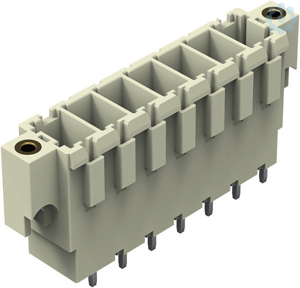 THT-Stiftleiste; Lötstift 1,0 x 1,2 mm; gerade; 100% fehlsteckgeschützt; Gewindeflansch; Rastermaß 7,62 mm; 7-polig; lichtgrau