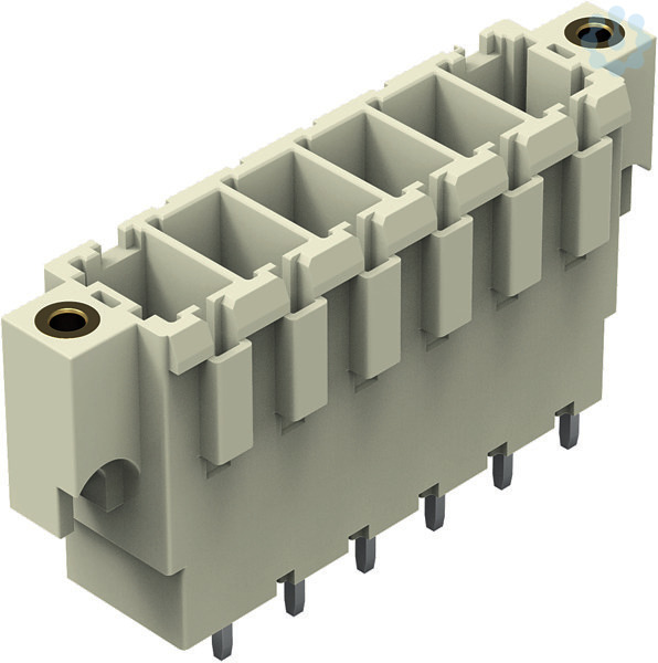 THT-Stiftleiste; Lötstift 1,0 x 1,2 mm; gerade; 100% fehlsteckgeschützt; Gewindeflansch; Rastermaß 7,62 mm; 6-polig; lichtgrau