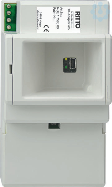 Für den Anschluss einer TK-Anlage mit MFV-Wahl über einen analogen a/b Port an die TwinBus-Leitung einer TwinBus Anlage. Anschluss an einen freien a/b-Port der Telefonanlage. Signalisierung auf bis zu 200 Teilnehmer. 1 - 20-stellige Teilnehmernummern. Anwahl z.B. über Klingeltaste der TwinBus Türstation oder Portier Codiermodul 18764xx oder Portier Displaymodul RGE18791xx: -Spannungsversorgung über Netztrafo oder Netzgerät. Anschluss einer Twinbus Türstation an eine TK-Anlage. Komfortable Programmierung über das Softwaretool /Telephone System Manager/ oder manuelle Konfiguration über analoge Nebenstelle möglich. Anschluss über Mini-USB-Schnittstelle. max. 18 Schaltfunktionen, davon 10 frei programmierbar. Montage in Normverteiler oder Aufputz. Für die Montage auf Hutschienen in Normverteilern nach DIN EN 43870. Abmessungen: 70x90x60 mm (BxHxT). Automatenplätze: 4. Spannungsversorgung: über Systembus aus Netztrafo 16477xx oder Netzgerät 17573xx Lieferumfang: CD Programmiersoftware Telephone System Manager(Windows 8/8.1 kompatibel) , USB-Kabel, Systembusstecker. REG.