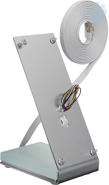 TKU-UNI Tischkonsole Universal Edelstahl/Glas. Audio-Tischkonsole für den Einsatz im Bürobereich. Bestehend aus einer Tischkonsole aus Glas/Edelstahl-Kombination und 8-adriger Anschlussschnur (flexibel, Länge 3 m) mit Steckverbinder RJ-45 (Western-Plug). Passend für Innenstationen.