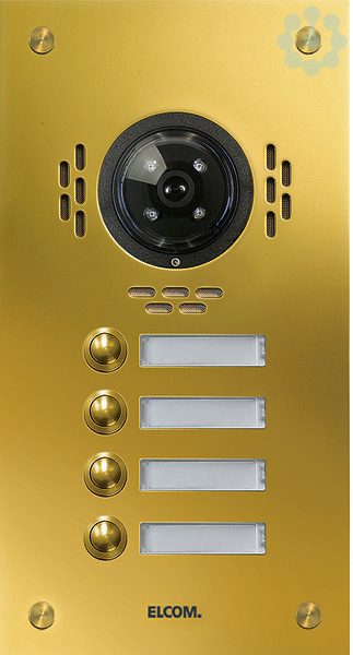 TMG-3/1 Aussenstat. für Kamera-Türlautsprecher 3/1 Rund-Taster UP PVD-mess. ESTA. Unterputz Video-Türstation für Sprechanlage/Intercom nach DIN EN 50486. Bestehend aus einer 2 mm dicken Frontplatte aus Edelstahl, poliert und veredelt mit witterungsbeständiger PVD-Messing-Beschichtung, mit Lochsprechöffnungen, runder Klingeltaster, Spezialschrauben, Namensschild (von vorn wechselbar) mit LED-Beleuchtung, Video-Vorbereitung und UP-Gehäuse 55 mm Tiefe. Hinweis: Passende Elektronik und Lautsprecher erforderlich.