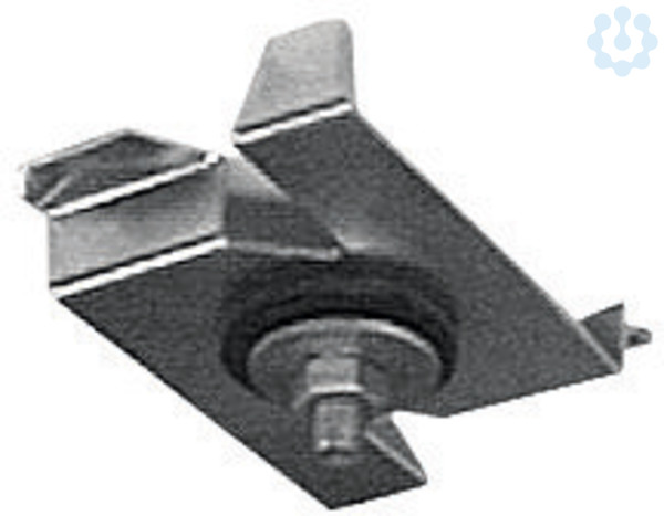 Leuchtenbefestiger für TRA-Tragschienen. Aus verzinktem Stahlblech, außenliegend. Inklusive Befestigungsschraube M5x12, SK-Mutter, Dichtscheibe und Unterlegscheibe.