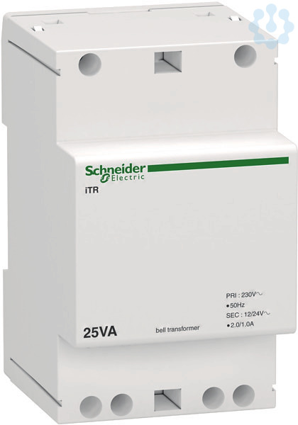 Klingeltransformator Acti 9 iTR. Ausgang 12-24V AC aus 230V Niederspannungsnetz, Leistung 25VA. Mit Klingel- und Sicherheitstransformatoren können Kleinspannungen aus einem Niederspannungsnetz entnommen werden. Kurzschlussfest. Schutzklasse II mit Klemmenabdeckung (optional). Der Klingeltransformator iTR erfüllt folgende Normen- EN 61558-2-6 und EN 60742.