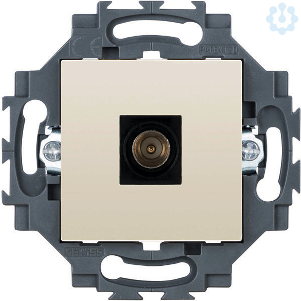 Antennensteckdosesteckdose zur Montage in Geraetedosen mit einer Einbauoeffung von 60mm. Der Tragring ist mit Befestigungskrallen bestueckt und kann aber auch mit Schrauben in einer entsprechenden Geraetedose befestigt werden. Die Abdeckung gehoert zum Lieferumfang.