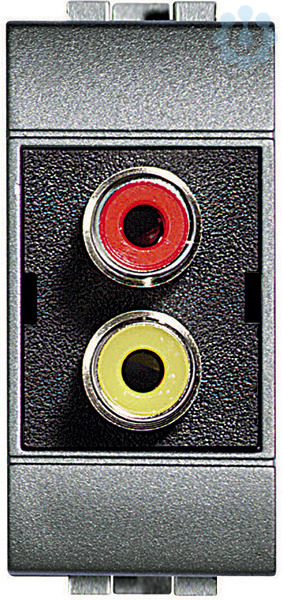 Steckdose 2× RCA (Cinch), Lötanschluss, 1-modulig, Farbe: Tech