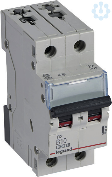 Legrand Leitungsschutzschalter TX3 nach EN 60898-1, VDE 0641-11, EN 60947-2, 2-polig, B-Charakteristik, Bemessungsstrom In 10 A, Bemessungsschaltvermögen Icn 6 kA nach EN 60898-1, Bemessungsspannung Un 400 VAC, Bemessungsfrequenz 50/60 Hz, Energiebegrenzungsklasse 3, Befestigung auf Hutprofilschiene EN 60715 durch eine rastende Schnellbefestigung, klare Information vorne auf jedem Gerät, eindeutige Schaltstellungsanzeige rot/grün am Schalthebel, mit Beschriftungsfenster, mit Untersteckschutz zum sicheren Einführen des Leiters in Fahrstuhlklemme, Anbau von Hilfsgeräten möglich. Leitungsschutzschalter mit B-Charakteristik sind vornehmlich für den Leitungsschutz in Licht- und Steckdosen-Stromkreisen bestimmt.