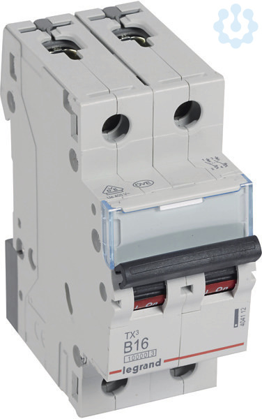 Legrand Leitungsschutzschalter TX3 nach EN 60898-1, VDE 0641-11, EN 60947-2, 2-polig, B-Charakteristik, Bemessungsstrom In 16 A, Bemessungsschaltvermögen Icn 10 kA nach EN 60898-1, Bemessungsspannung Un 400 VAC, Bemessungsfrequenz 50/60 Hz, Energiebegrenzungsklasse 3, Befestigung auf Hutprofilschiene EN 60715 durch eine rastende Schnellbefestigung, klare Information vorne auf jedem Gerät, eindeutige Schaltstellungsanzeige rot/grün am Schalthebel, mit Beschriftungsfenster, mit Untersteckschutz zum sicheren Einführen des Leiters in Fahrstuhlklemme, Anbau von Hilfsgeräten möglich. Leitungsschutzschalter mit B-Charakteristik sind vornehmlich für den Leitungsschutz in Licht- und Steckdosen-Stromkreisen bestimmt.