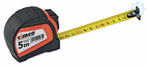 Taschen-Bandmaß (Rollmeter) aus 19mm breitem Federbandstahl, gelb einbrennlackiert, in metrischer Skalierung, leichtgängiger automatischer Bandrücklauf mit kräftiger Stopptaste, bruchsicheres ABS-Gehäuse in moderner 2-Komponenten-Ausführung mit ergonomischer Weichgummieinlage, mit Trageclip, Farbe rot, Länge 5m