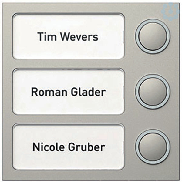 Für modulare Türstationen und Briefkastensysteme. Steuerelektronik für die Adressierung der Klingeltasten. Namensschilder über LED beleuchtet und beschriftbar. Steckbare Busverbinder zum Anschluss an die Buslinie der Türstation. Stecker zum Anschluss weiterer Funktionsmodule. Einbauabmessungen 95x95x33 mm (BxHxT). Abmessungen Schriftfeld 56x22 mm (BxH). Zubehör Rückmeldeplatine 18799xx für akustische Rückmeldung. Farbe titan.
