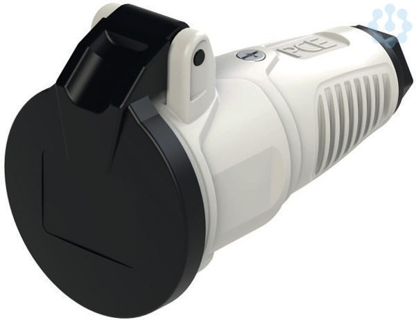 Schutzkontaktkupplung Serie TAURUS2 - Gummi mit Klappdeckel; Farbe (Haube/Ring/Deckel): hellgrau/schwarz/schwarz; Material (Haube/Kontaktträger): TPE/PA6; Schutzkontaktsystem: österr./deutsch ; 16A / 250V AC / 3p (2P+E), Schutzart: IP54