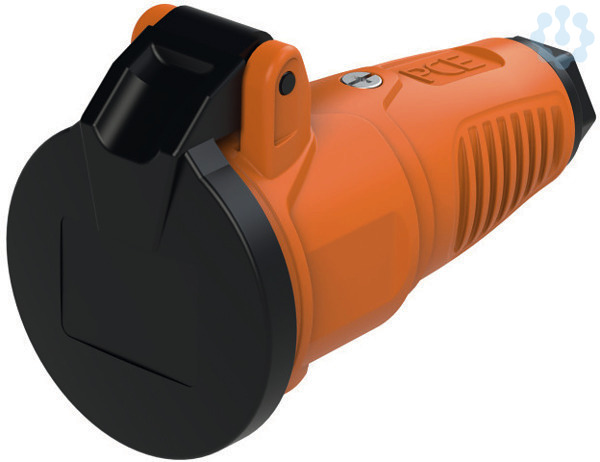 Schutzkontaktkupplung Serie TAURUS2 - Gummi mit Klappdeckel; Farbe (Haube/Ring/Deckel): orange/schwarz/schwarz; Material (Haube/Kontaktträger): TPE/PA6; Schutzkontaktsystem: österr./deutsch ; 16A / 250V AC / 3p (2P+E), Schutzart: IP54