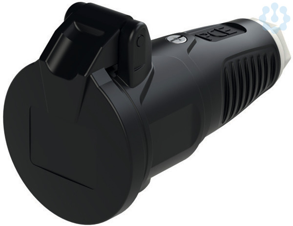 Schutzkontaktkupplung Serie TAURUS2 - Gummi mit Klappdeckel; Farbe (Haube/Ring/Deckel): schwarz/weiß/schwarz; Material (Haube/Kontaktträger): TPE/PA6; Schutzkontaktsystem: österr./deutsch ; 16A / 250V AC / 3p (2P+E), Schutzart: IP54