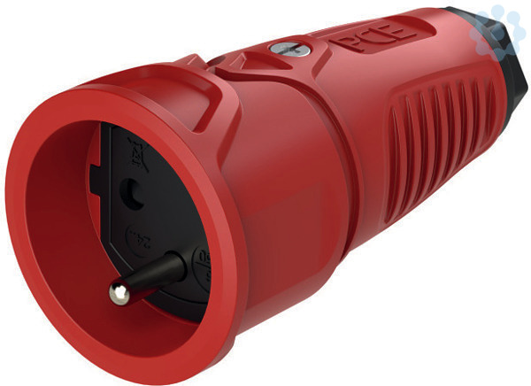 Schutzkontaktkupplung Serie TAURUS2 - Gummi; Farbe (Haube/Ring): rot/schwarz; Material (Haube/Kontaktträger): TPE/PA6; Schutzkontaktsystem: franz./belg. mit Shutter; 16A / 250V AC / 3p (2P+E), Schutzart: IP20