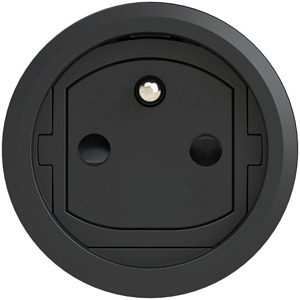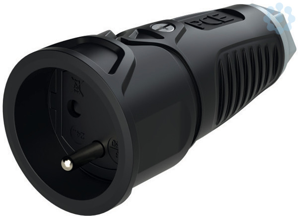 Schutzkontaktkupplung Serie TAURUS2 - Gummi; Farbe (Haube/Ring): schwarz/grau; Material (Haube/Kontaktträger): TPE/PA6; Schutzkontaktsystem: franz./belg. mit Shutter; 16A / 250V AC / 3p (2P+E), Schutzart: IP20