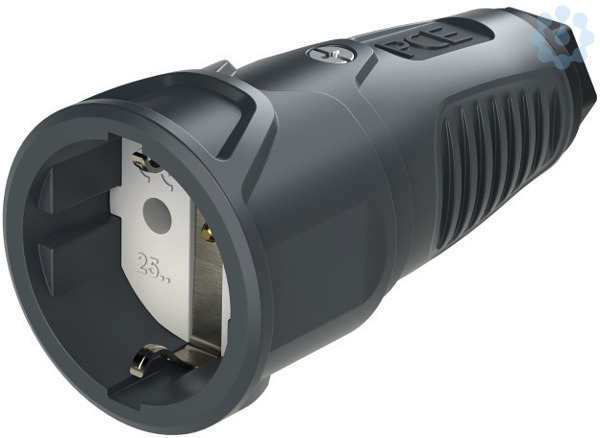 Schutzkontaktkupplung Serie TAURUS2 - Gummi; Farbe (Haube/Ring): anthrazit/schwarz; Material (Haube/Kontaktträger): TPE/PA6; Schutzkontaktsystem: österr./deutsch ; 16A / 250V AC / 3p (2P+E), Schutzart: IP20