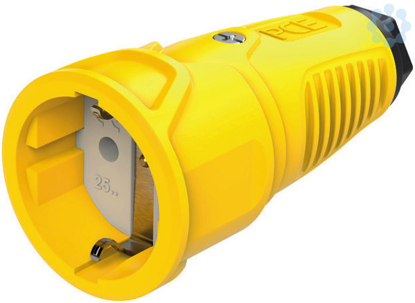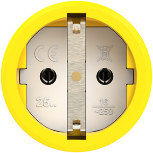 Schutzkontaktkupplung Serie TAURUS2 - Gummi; Farbe (Haube/Ring): gelb/schwarz; Material (Haube/Kontaktträger): TPE/PA6; Schutzkontaktsystem: österr./deutsch ; 16A / 250V AC / 3p (2P+E), Schutzart: IP20