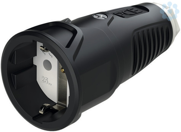 Schutzkontaktkupplung Serie TAURUS2 - Gummi; Farbe (Haube/Ring): schwarz/weiß; Material (Haube/Kontaktträger): TPE/PA6; Schutzkontaktsystem: österr./deutsch ; 16A / 250V AC / 3p (2P+E), Schutzart: IP20