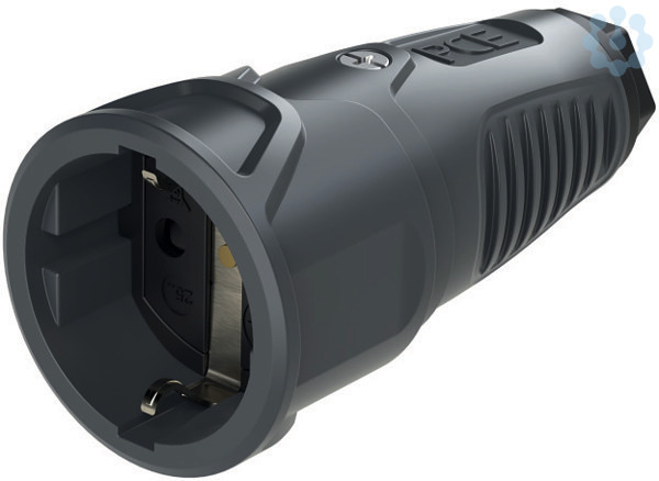 Schutzkontaktkupplung Serie TAURUS2 - Gummi; Farbe (Haube/Ring): anthrazit/schwarz; Material (Haube/Kontaktträger): TPE/PA6; Schutzkontaktsystem: österr./deutsch mit Shutter; 16A / 250V AC / 3p (2P+E), Schutzart: IP20