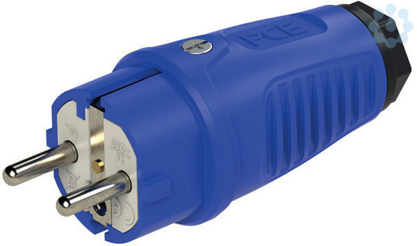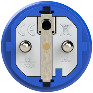 Schutzkontaktstecker Serie TAURUS2 - Gummi; Farbe (Haube/Ring): blau/schwarz; Material (Haube/Kontaktträger): TPE/PA6; Schutzkontaktsystem: zweifaches Erdungssystem ; 16A / 250V AC / 3p (2P+E), Schutzart: IP54