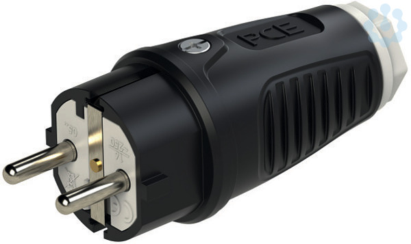 Schutzkontaktstecker Serie TAURUS2 - Gummi; Farbe (Haube/Ring): schwarz/weiß; Material (Haube/Kontaktträger): TPE/PA6; Schutzkontaktsystem: österr./deutsch ; 16A / 250V AC / 3p (2P+E), Schutzart: IP54
