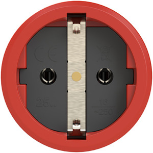 Schutzkontaktkupplung Serie TAURUS2 - Vollgummi mit Deckelband; Farbe (Haube/Ring/Deckel): rot/schwarz/schwarz; Material (Haube/Kontaktträger): TPE/TPE; Schutzkontaktsystem: österr./deutsch ; 16A / 250V AC / 3p (2P+E), Schutzart: IP54