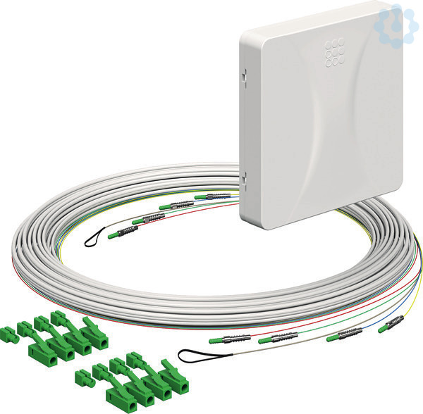 Teilnehmeranschluss (Gf-TA) E3S Connect®, Aufputz, 4xF, LC/APC DX, L=10m, Gf-GV (4252049). Spleißkassetten Anzahl: 1 | Faseranzahl: 4 | Kabellänge: 10 m