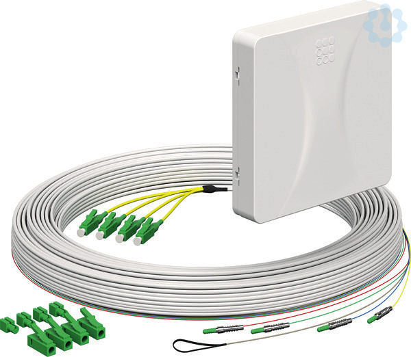 Teilnehmeranschluss (Gf-TA) E3S Connect®, Aufputz, 4xF, LC/APC DX, L=25m, HÜP (4252042). Spleißkassetten Anzahl: 1 | Faseranzahl: 4 | Kabellänge: 25 m