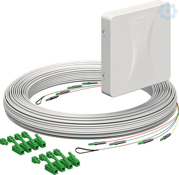 Teilnehmeranschluss (Gf-TA) E3S Connect®, Aufputz, 4xF, LC/APC DX, L=30m, Gf-GV (4252053). Spleißkassetten Anzahl: 1 | Faseranzahl: 4 | Kabellänge: 30 m