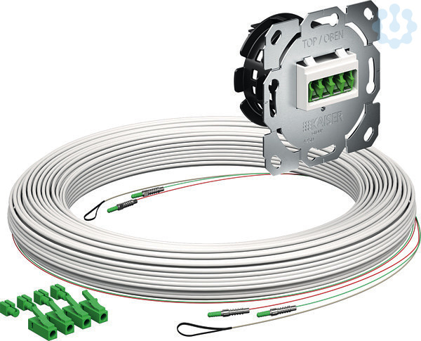 Teilnehmeranschluss (Gf-TA) E3S Connect®, Unterputz, 2xF, LC/APC DX, L=30m, Gf-GV (4250033). Spleißkassetten Anzahl: 1 | Faseranzahl: 2 | Kabellänge: 30 m